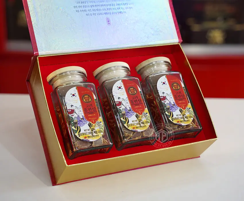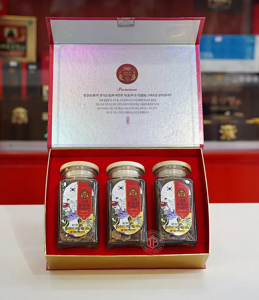 - Hồng sâm lát khô Daedong hộp 3 lọ x 100g là một dòng sản phẩm chế biến từ sâm củ khô 6 năm tuổi Hàn quốc, với chất lượng vượt trội so với sâm tươi.