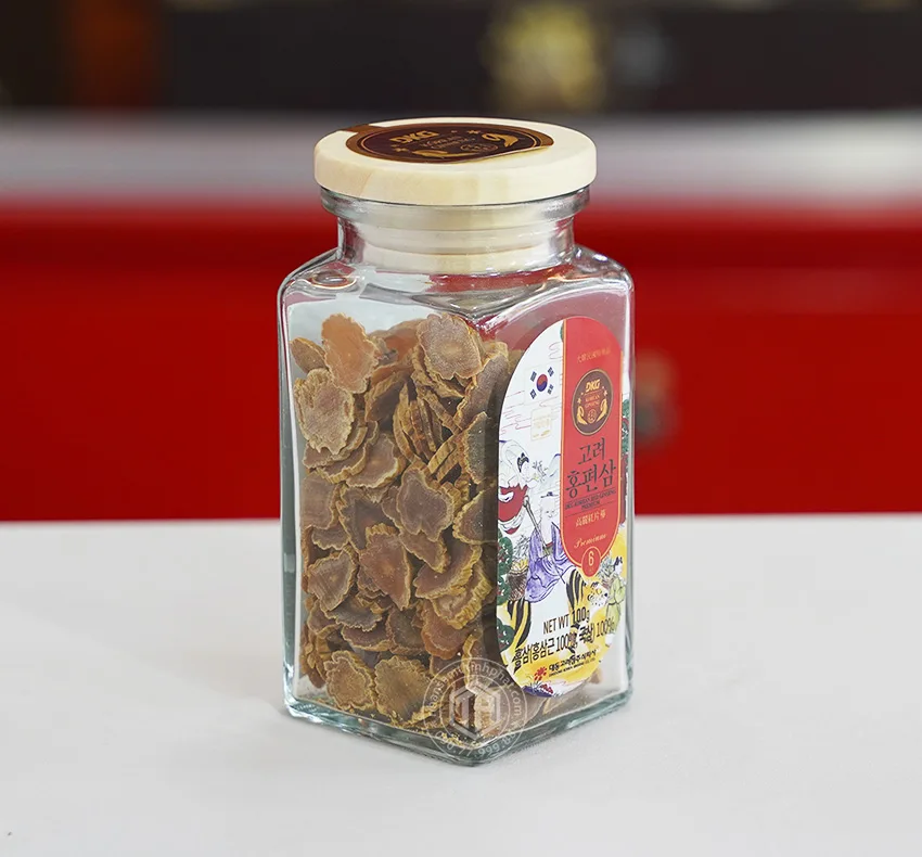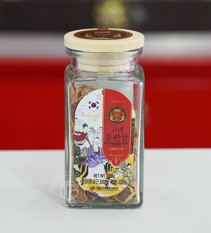 - Hồng sâm lát khô Daedong lọ 100g là một dòng sản phẩm chế biến từ sâm củ khô 6 năm tuổi Hàn quốc, với chất lượng vượt trội so với sâm tươi.
