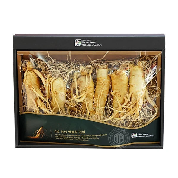 Nhân sâm tươi Hàn Quốc 6 năm tuổi ở dạng tươi chưa qua sơ chế thành các sản phẩm. Nhân sâm tươi chất lượng loại 1 khác nhiều so với những loại sâm thông thường khác, chúng có màu sắc và ngoại hình khá bắt mắt, củ to, suông dài, nhiều rễ phụ, da bóng, đẹp, màu sáng. Nhân sâm tươi Hàn Quốc có chất lượng cực kỳ tốt, được mệnh danh là thập bổ toàn năng, hỗ trợ tăng cường sức khỏe, rất tốt đối với người già, tốt cho làn da, nên vô cùng có ích đối với các chị em muốn gìn giữ nét thanh xuân, nam giới muốn giữ vững phong độ… chính bởi vì lớp đất đai lý tưởng nơi nó được nuôi dưỡng. Thậm chí, nó còn đặc biệt ở chỗ đem giống sâm về nơi khác trồng cũng không thể cho ra những củ sâm chất lượng được như ở Hàn Quốc, và đó chính là lý do mà thương hiệu sâm tươi Hàn Quốc nổi tiếng trên thế giới đến như thế.